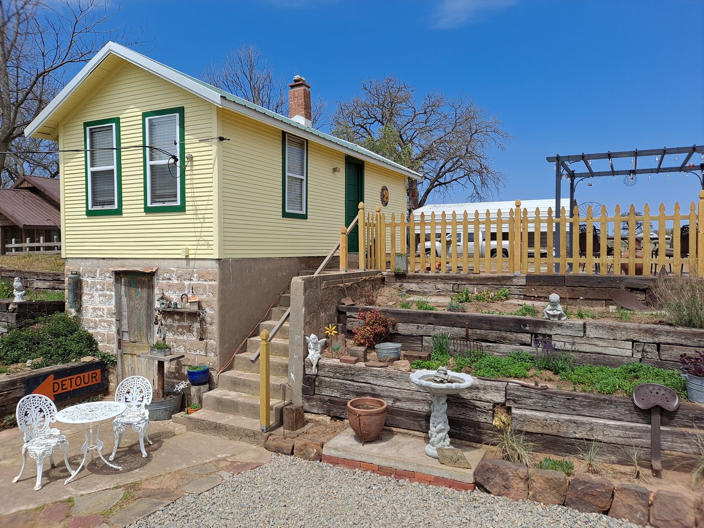 After moving to the Old Station and opening their business, Jonna and Dave began making several improvements to the property. The guest house was expanded with a bathroom. They also had new metal roofs put on all the buildings and gave the station building and guest house their distinctive exterior color scheme of an eye-catching yellow with dark green trim.